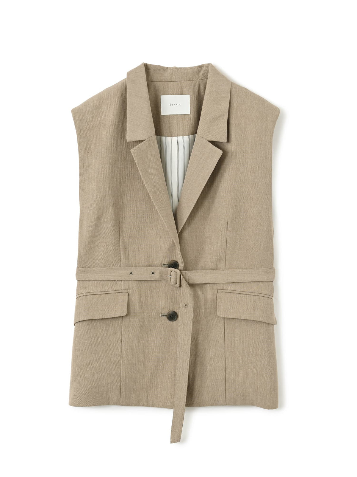 小柄さんが着用してもスッキリと見える襟に、ウエストマーク可能なベルト付きでスタイルUPも叶います。無地のベージュとグレーはストライプ裏地を使用し、見えない部分にもこだわりの詰まったアイテムです。