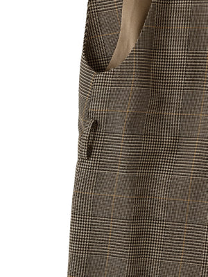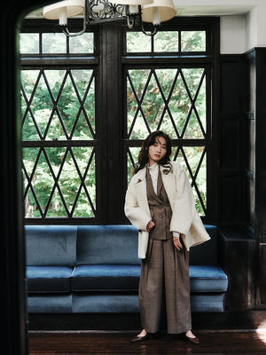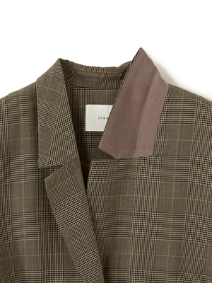 毛羽の少ない高密度のウール混ツイル素材を使用しています。適度なハリと落ち感があり、しなやかでコシのある風合いが魅力の高級感のある素材感。ベーシックに着回しの効くベージュとグレー、スタイリングのアクセントとなってくれるチェックの3色展開です。