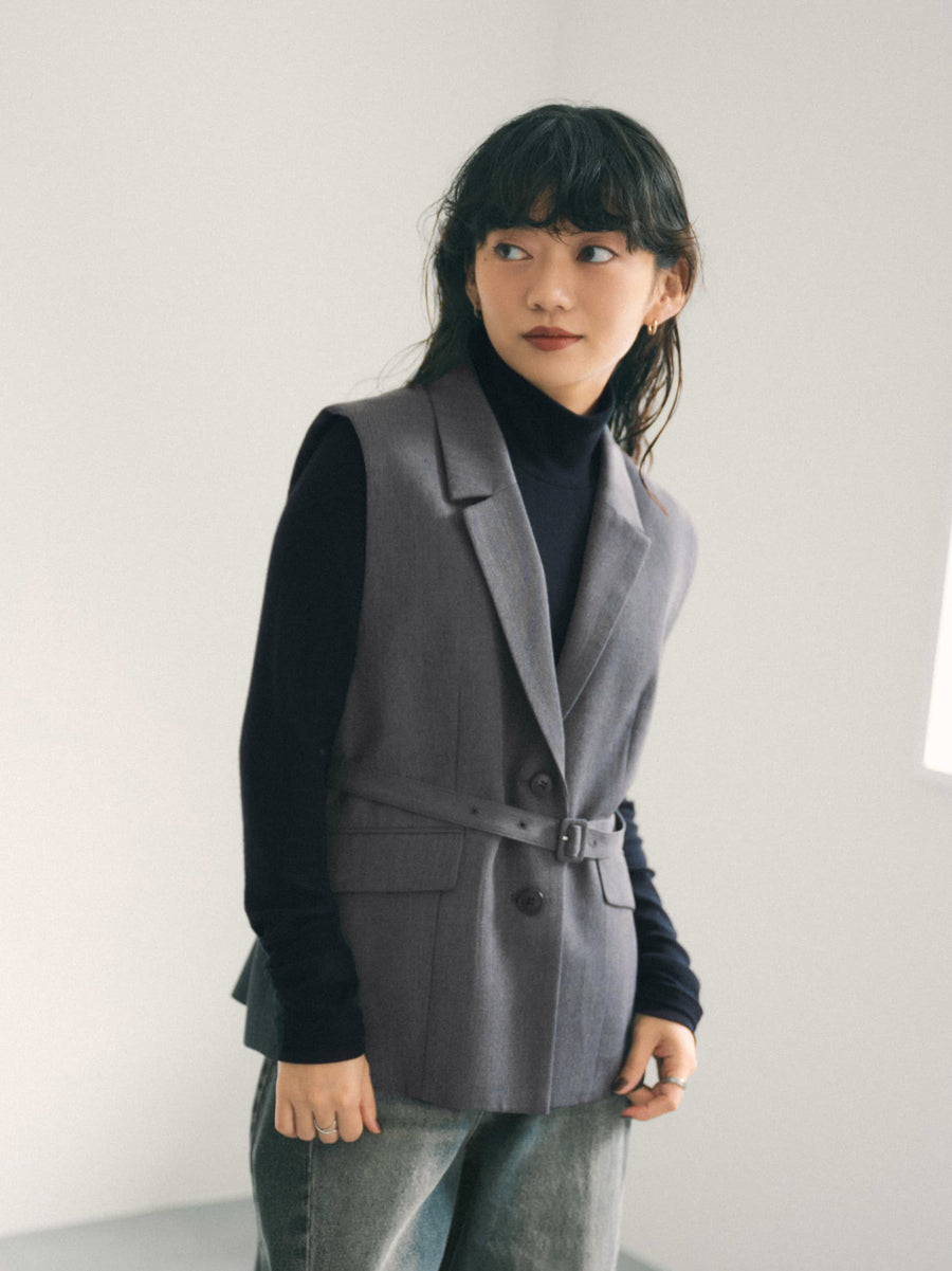 スッキリとしたシングルフロントのテーラードジレ。