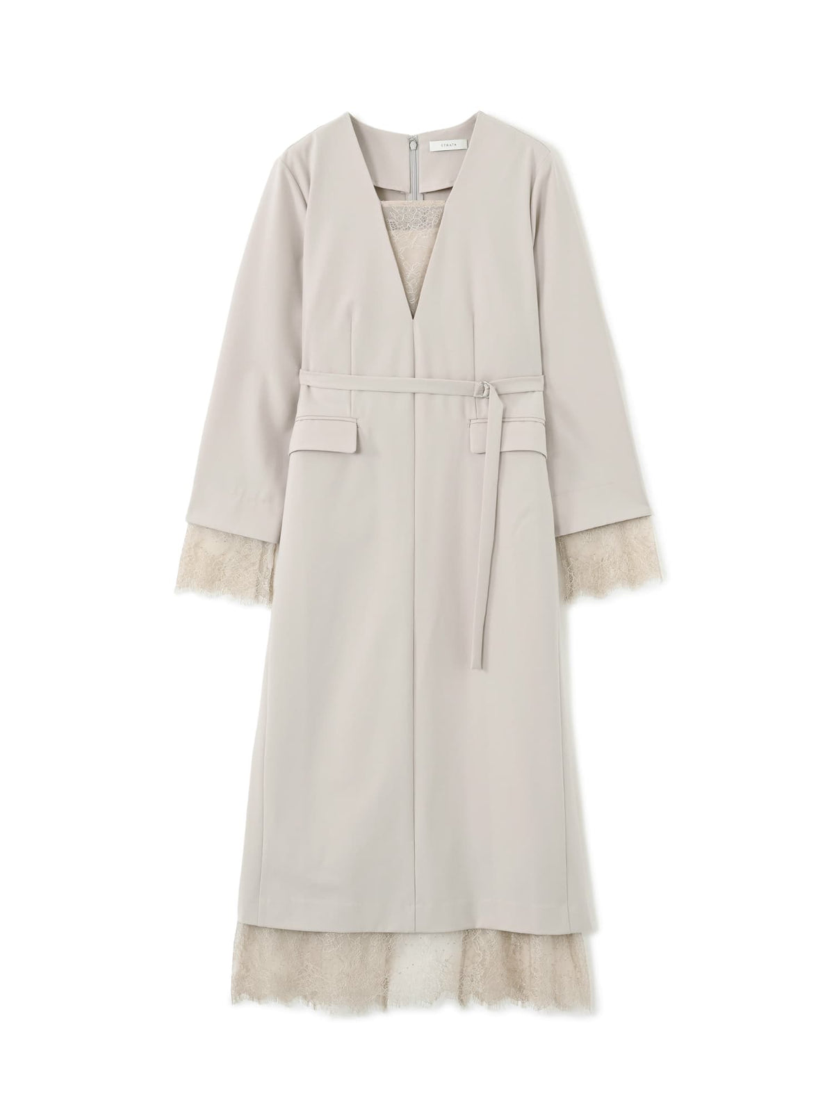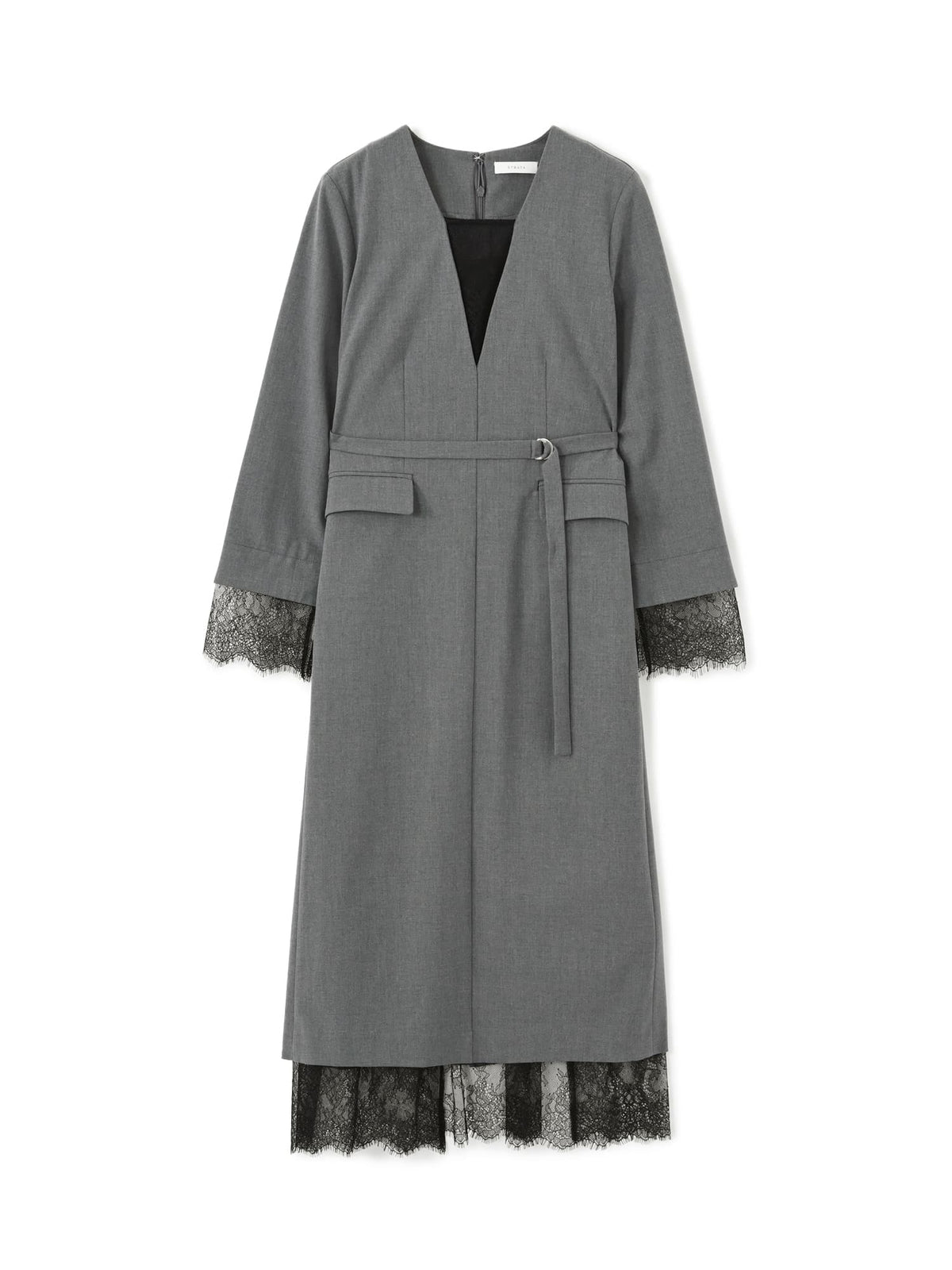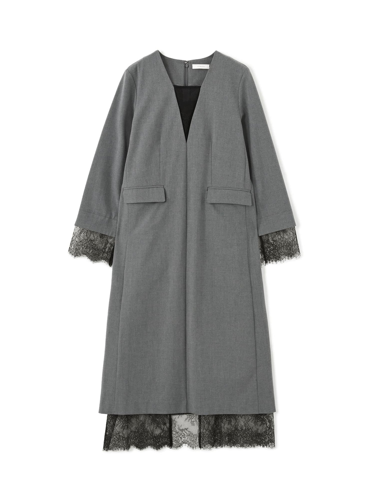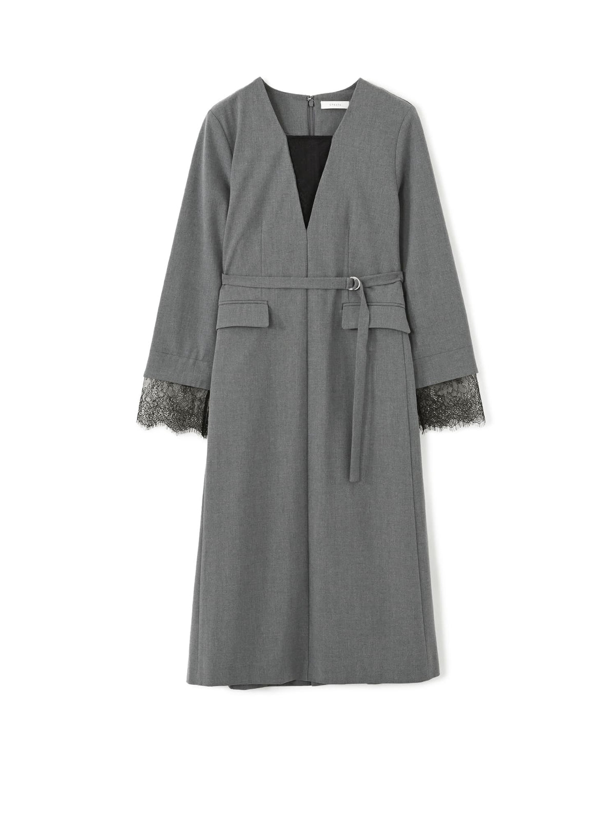 ストラップが調整できるキャミソールドレスがセットになっているので胸元のレースも透け感を気にせず着用可能です。袖口にスリットがあるので上品な印象且つ、ウエストマーク可能でスタイルUP見えも叶い、STRATAらしい大人の小柄女性に向けた1枚。