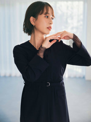 袖や裾、胸元からちらっと覗く繊細なレースが大人らしさを感じさせます。ウエストマークができるベルトで細見えも◎オケージョンシーンでも着られる1枚で華やかなワンピースです。