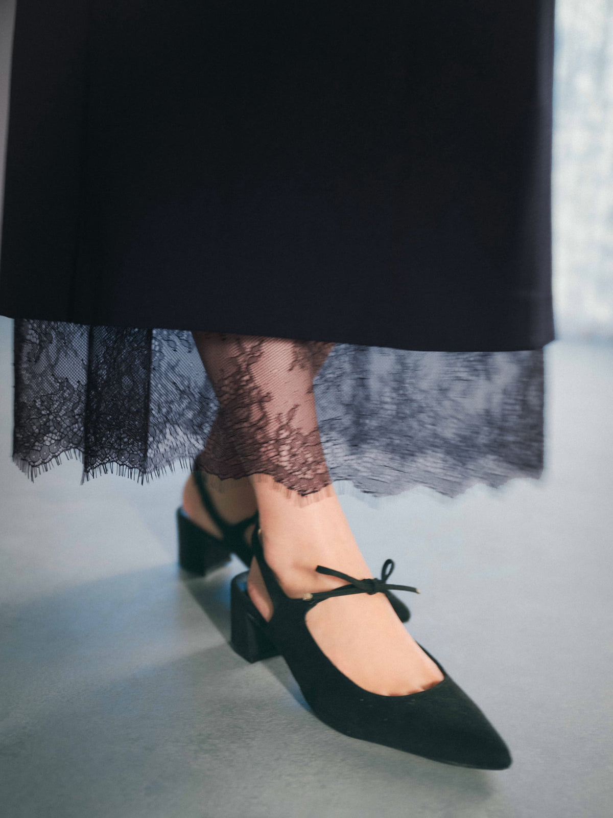 トレンド感のある繊細なレースを施すことでモードな印象をプラスしてくれるアイテム。