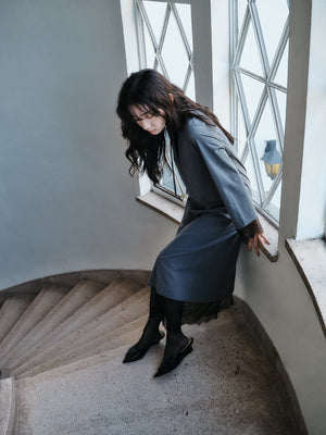 梳毛調の縦横ストレッチ素材を使用しているので綺麗見えな素材感ながらもストレスフリーな着心地が魅力。ぺチワンピースはサテンストレッチ素材を使用しているのでさらりと着心地の良い素材感です。